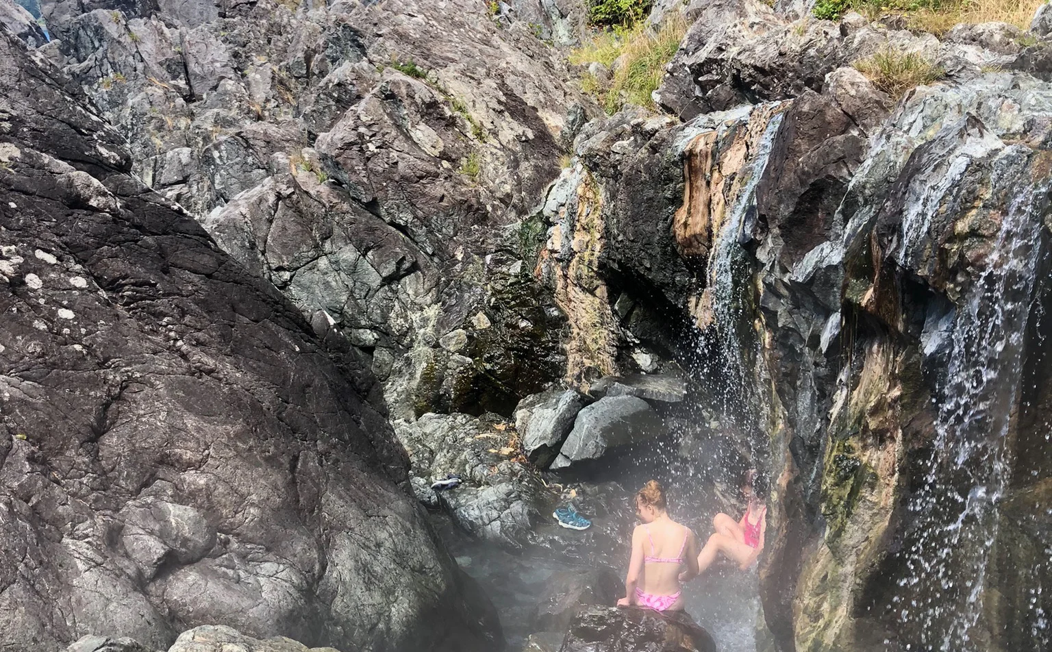 At the end of the trail, a series of thermal rock pools and water fall spill into the ocean, heated by volcanic energy beneath the earth. Enjoy up to three hours at the park: hiking, soaking, relaxing, and exploring before heading back via another scenic ride.
